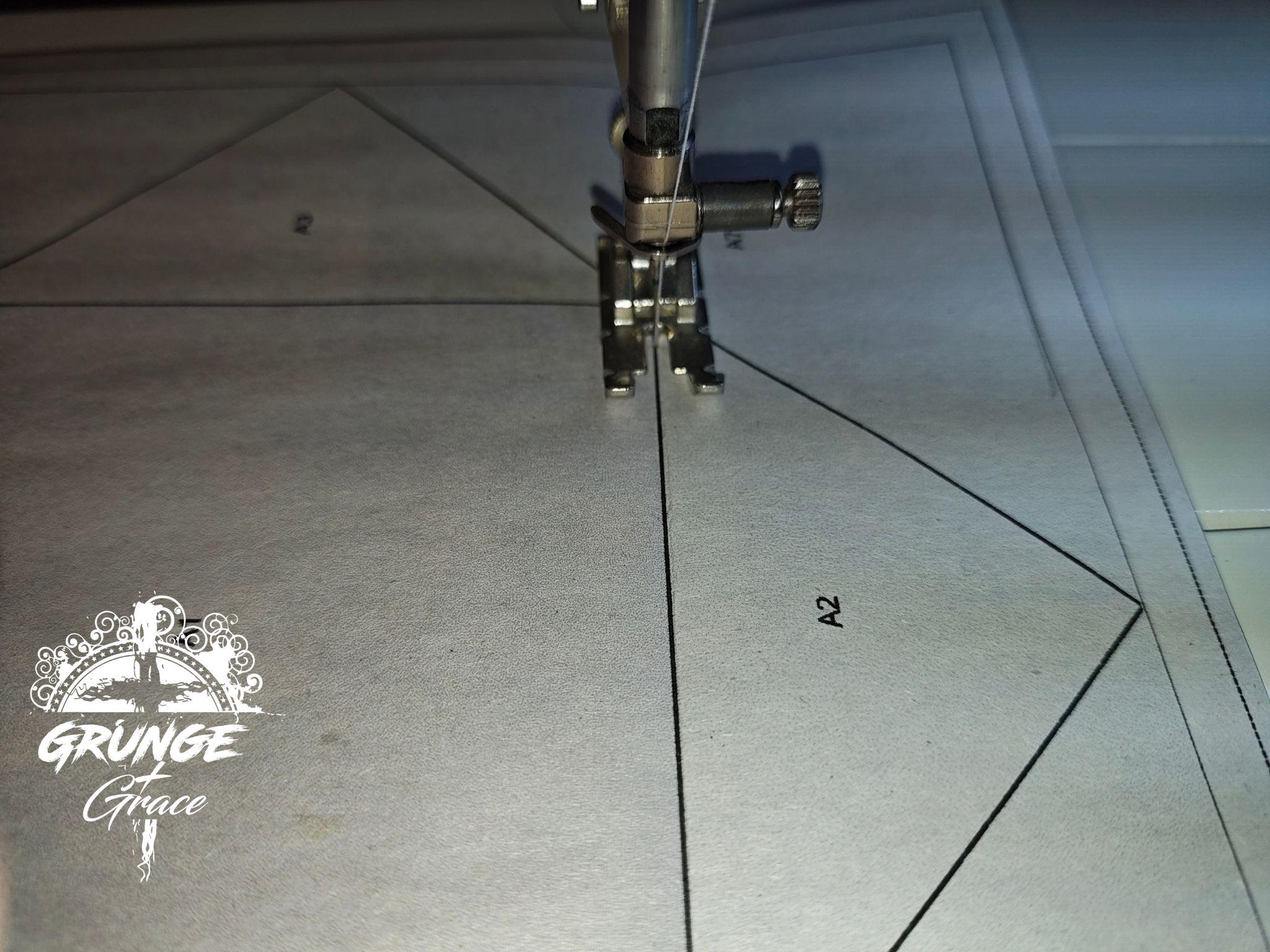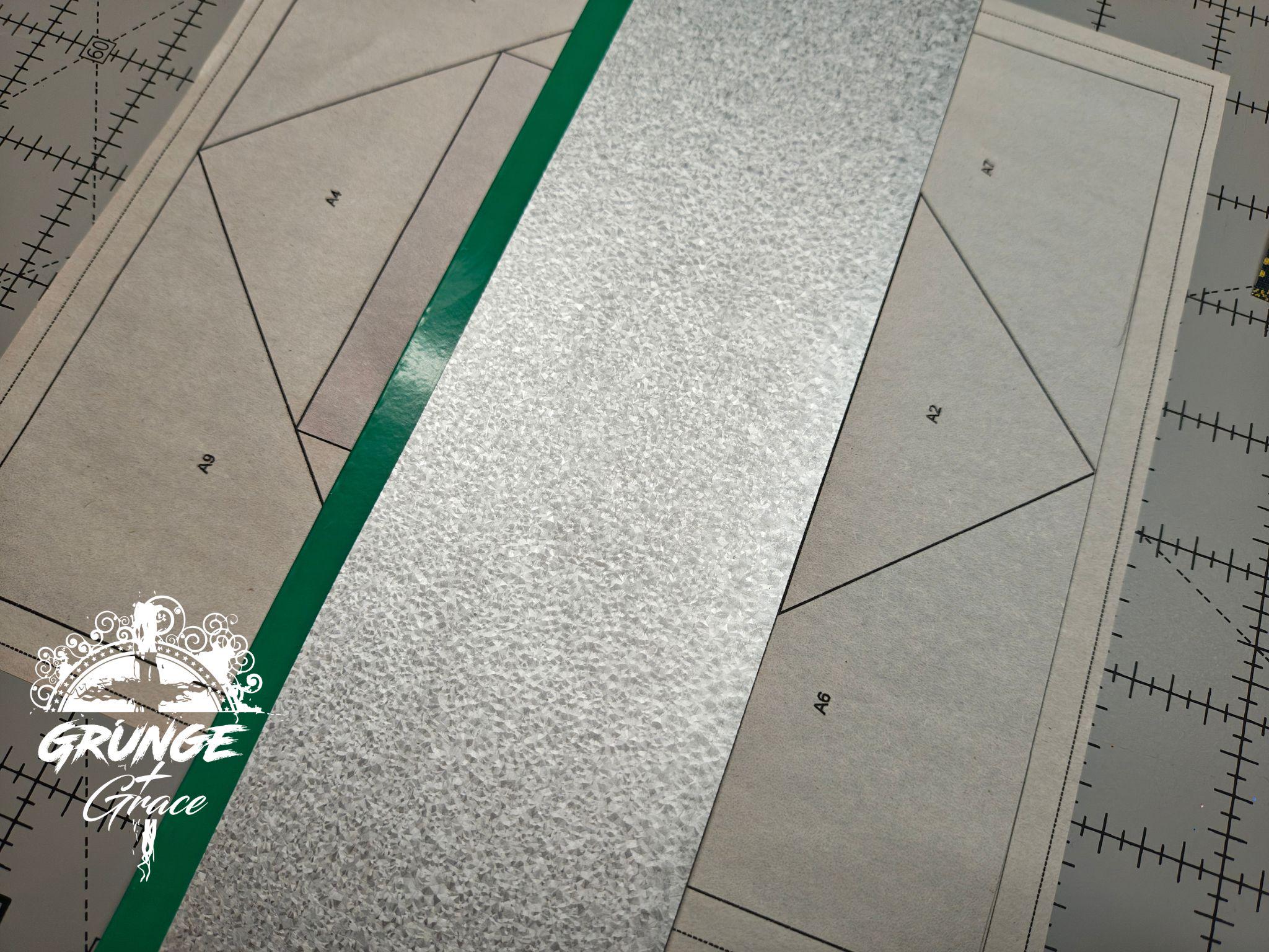 Line up your fold template on the sew line between your first and second sections. Sometimes the sew lines are labeled, but not all designers label this.