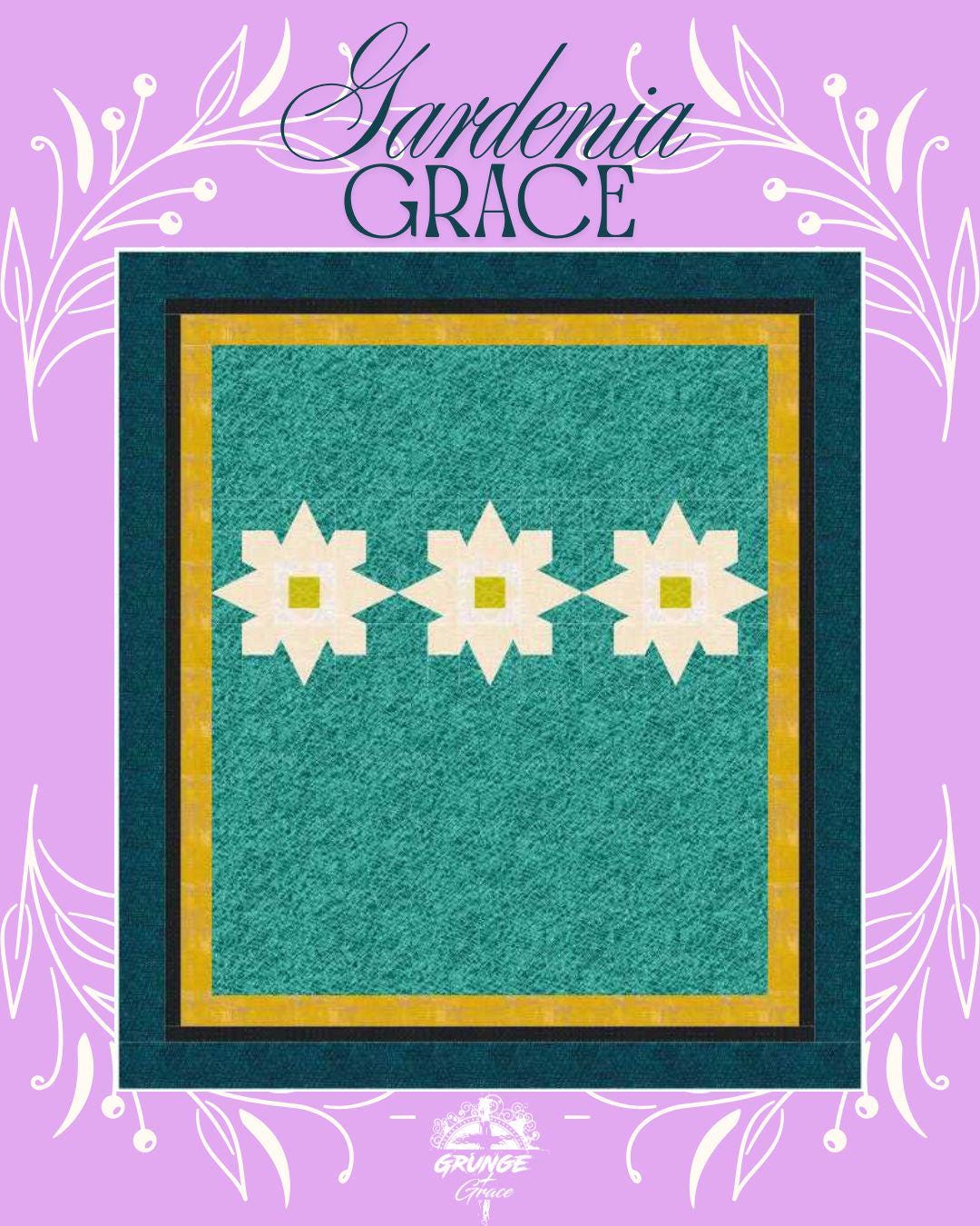 And now for the sneak peek at the Gardenia Grace quilt pattern, which is a throw sized quilt and is perfect for cuddling up on the couch!